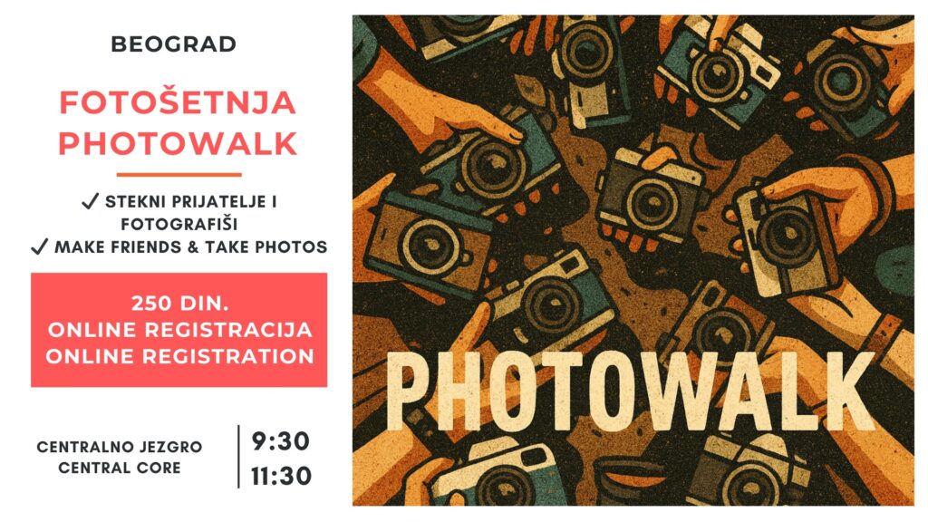 On Saturday, April 25th from 9:30 to 11:30 AM, join a global photowalk community event in the heart of Belgrade — because the best way to discover a city is through your lens! Bring your phone or camera — beginners and professionals are equally welcome. This is above all a social event: meet new people, make friends, and enjoy a fun and inspiring photo walk through Belgrade’s central streets.